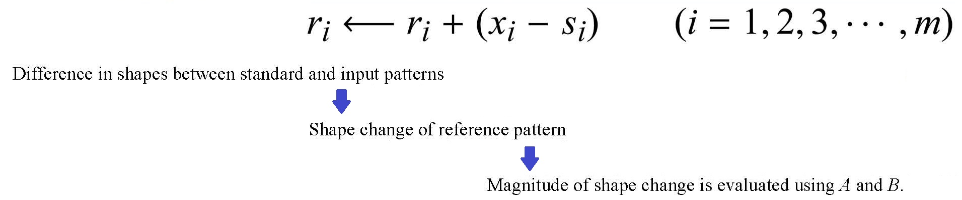 With the GD algorithm, a difference in shapes between standard and input patterns is replaced by the shape change of the reference pattern using Equation (3).