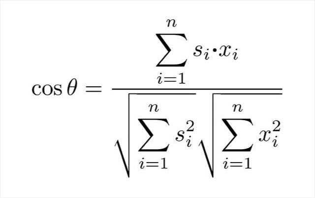 The cosine similarity is then calculated using the following equation. Note that Figures 1B-4B show the angle θ, which is calculated using an arccosine.