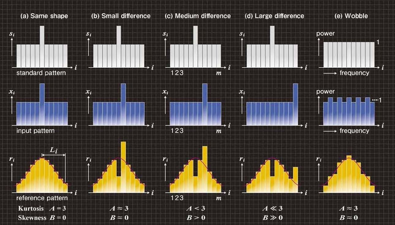 Conventional similarity scales known as the Euclidean distance and cosine similarity compare the patterns using one-to-one mapping. The result of the one-to-one mapping is that the distance metric is highly sensitive to noise, and the distance metric changes in a staircase pattern when a difference occurs between peaks of the standard and input patterns.